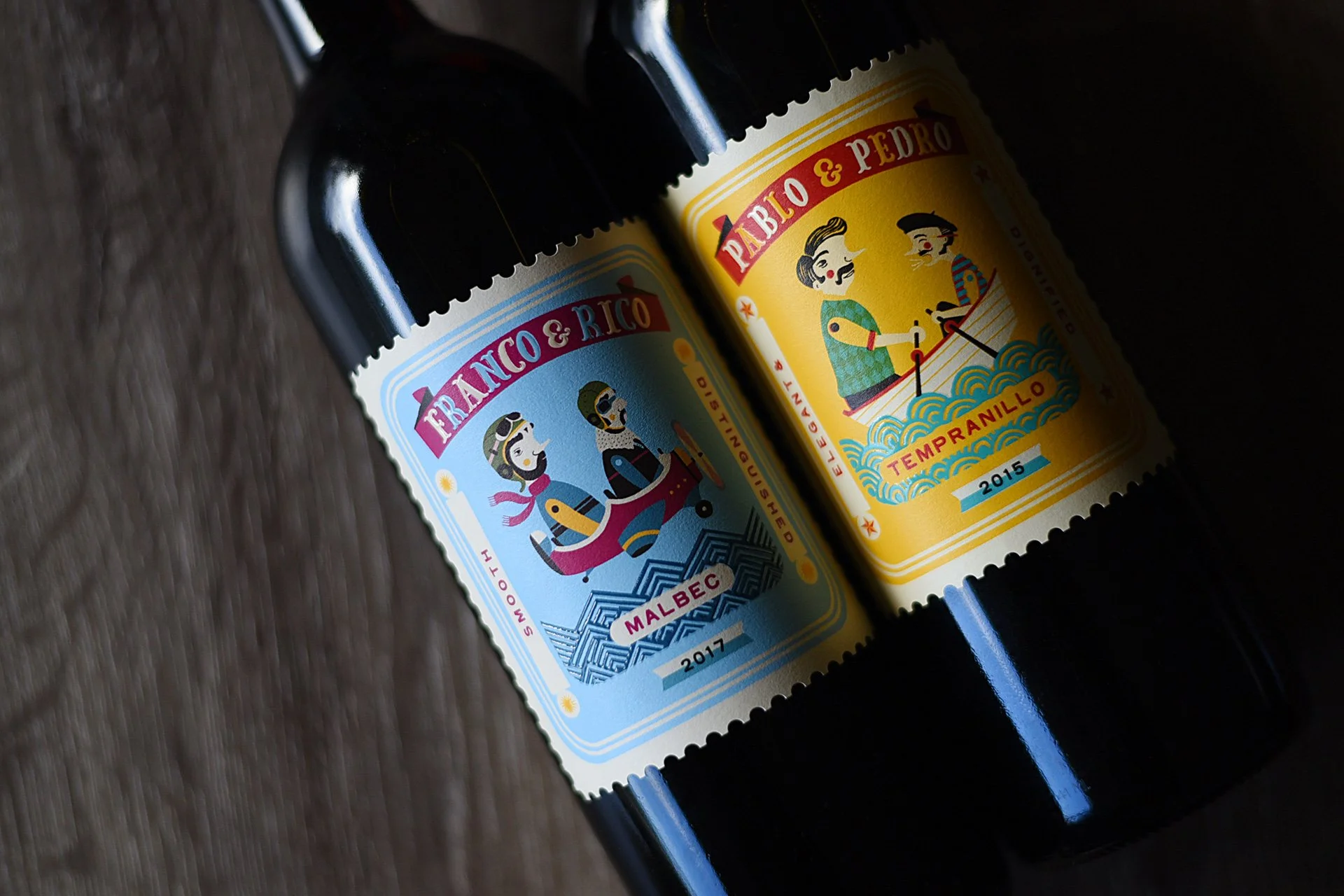 With so much charm in the original label, Pablo & Pedro naturally served as the inspiration for our range extension. Their distinct personalities yet unified mission, helped us to conceive Franco & Rico, our namesakes for the new Malbec. Franco was laid back, modern and spontaneous, while Rico exuded tradition and formality. Two Argentinian fellows with a complex friendship!